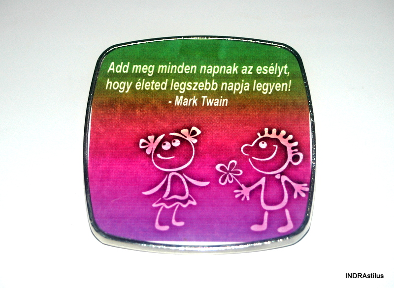 Fém keretben lévo minoségi kidolgozású, négyzet alakú hutomágnes, melynek mérete 6 x 6 cm.