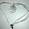 Ametiszt féldrágakobol és ezüstözött drót felhasználásával kézzel készült egyedi Életfa medál, fehér borön.