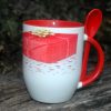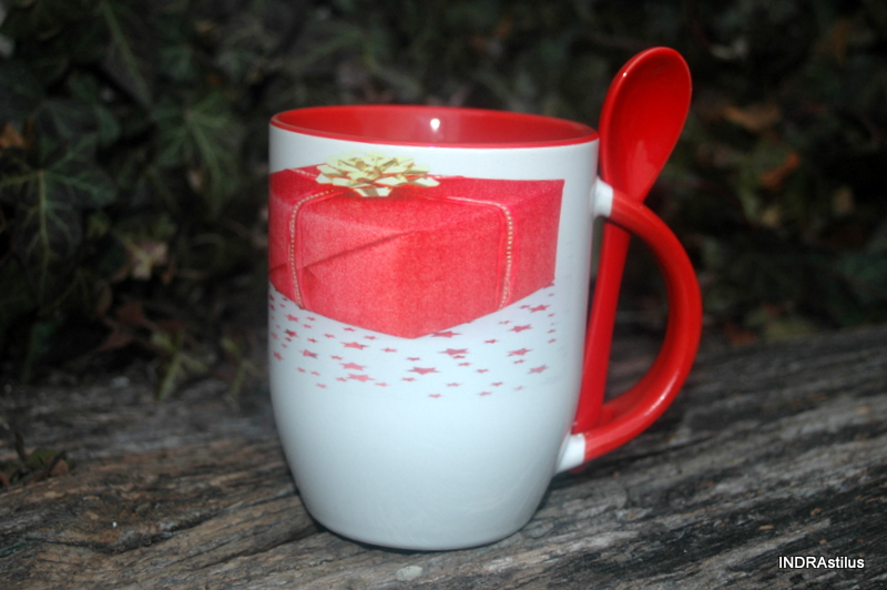 Piros belseju, 3 dl-es, kanalas bögre csomag képpel és felirattal: