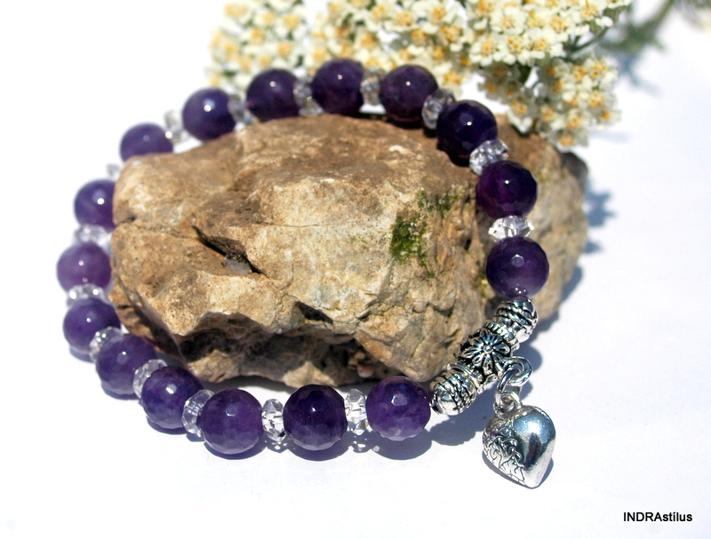 A karköto minoségi ametiszt alapanyagokból áll, allergiamentes fém alkatrészeket tartalmaz: szív medál.