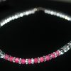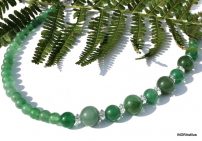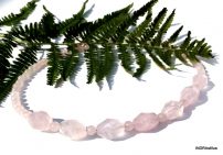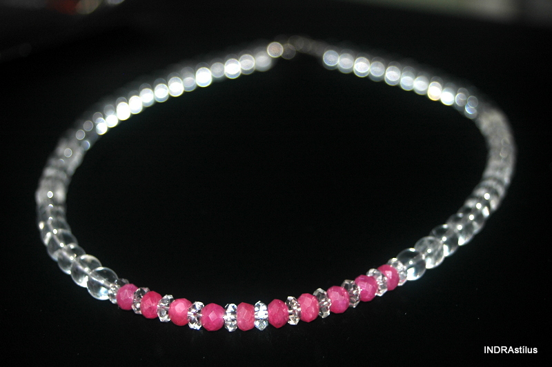 A nyaklánc hegyikristály és rubin féldrágakövekbol és allergiamentes fém alkatrészekbol áll.