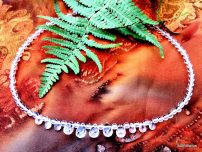 A nyaklánc hegyikristály és rubin féldrágakövekbol és allergiamentes fém alkatrészekbol áll.