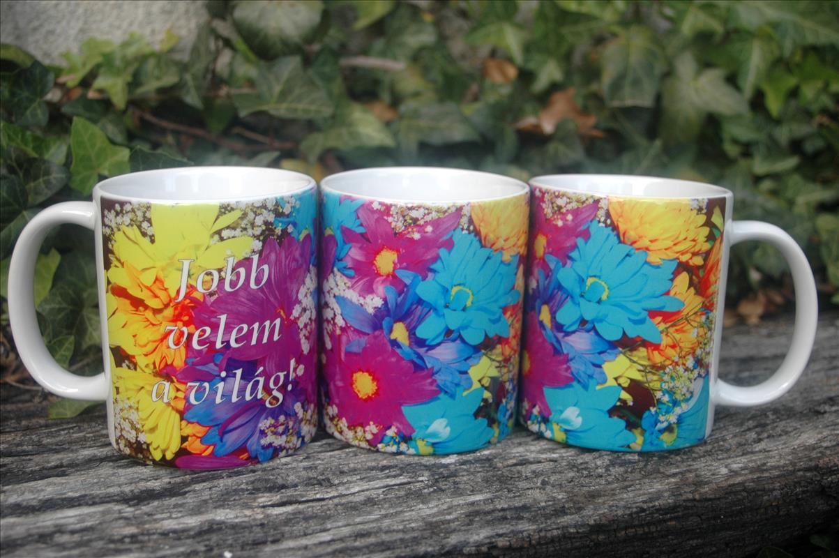 Ez a gyönyöru színes virágokat ábrázoló bögre tökéletesen harmonizál, mondanivalójával jó kedvre derít, bármikor használjuk is azt.