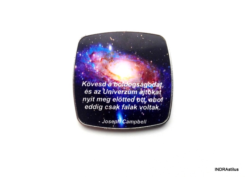 „Kövesd a boldogságodat, és az Univerzum ajtókat nyit meg elotted ott, ahol eddig csak falak voltak.” – felirattal.
