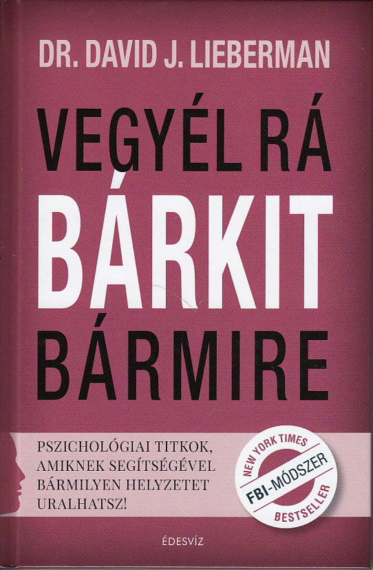 Dr. Lieberman az emberi kommunikáció újdonságnak számító területén kutakodik: a Vegyél rá bárkit bármire címu könyvében az interperszonális kommunikáció forradalmának lehetünk a tanúi. Ebbol a lenyugözo írásból megtudhatod, hogyan: vegyél rá bárkit, hogy vonzónak találjon; kerekedj felül azonnal bármely kapcsolatban; vegyél rá bárkit, hogy fogadja meg a tanácsodat; vegyél rá bárkit, hogy szívességet tegyen neked; vegyél rá bárkit, hogy hívjon vissza; vegyél rá bárkit, hogy haladéktalanul hagyja abba a szitkozódást; vegyél rá bárkit, hogy megbízzon benned.